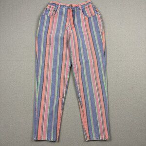 Vintage 90s Denim Pants Womens Sz 11/12 Multicolor Stripe High Rise Mom Straight