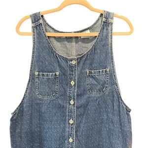 Vintage 90s Denim Polka Dot Boxy Apron Dress Classic Preppy 90s Minimalist