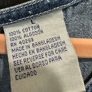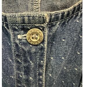 Step back into the effortless style of the 90s with this vintage denim apron dress. Designed with a relaxed, boxy silhouette, it features a subtle white polka dot print, full button-down front, and practical patch pockets for that easy, everyday wear. The medium-wash denim adds a timeless charm, while the apron style brings a playful yet minimalist edge.