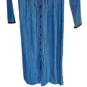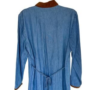 Vintage 90s Denim Teacher Dress Fall Maxi Dress with Faux Suede Collar 12