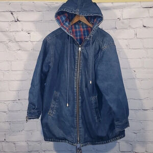 Vintage 90's Denim and Plaid Zip Up Midweight Reversible Coat