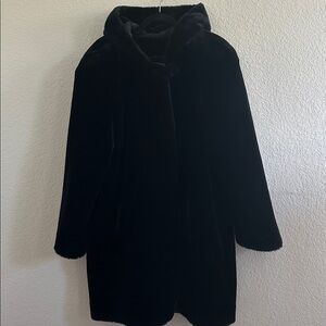 Stay warm, cozy and fashionable in this Beautiful Hooded Dennis Basso Faux Fur heavy coat perfect for a night out or for daily Streetwear.