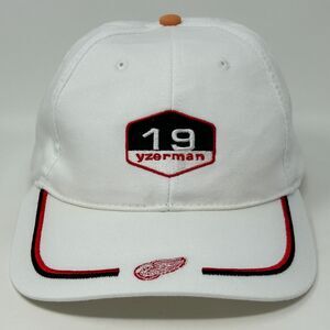Vintage 90s Detroit Red Wings Steve Yzerman 19 Baseball Hat Cap NHL Ice Hockey NHLPA Drew Pearson Strapback White Six Panel