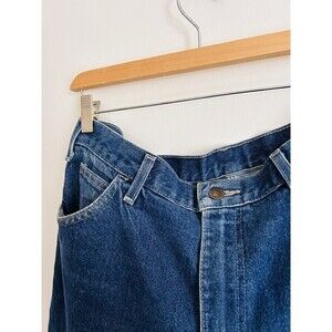 This pair of vintage Dickies carpenter jeans is a must-have for any fan of American grunge fashion. With a size of 34 waist and 29 inseam, these blue denim pants are made of 100% cotton and feature a straight style fit with an 11 inch rise. The jeans come in light fabric wash and have a zip closure, along with accents like embroidered logos and pockets.