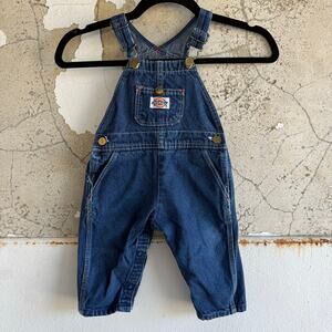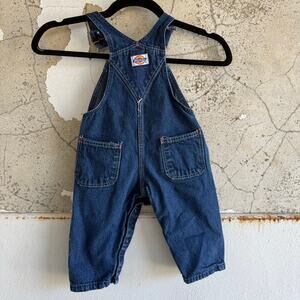 Vintage 90s Dickies Denim Overalls Toddler 24 Months Baby Workwear Jean Bibs