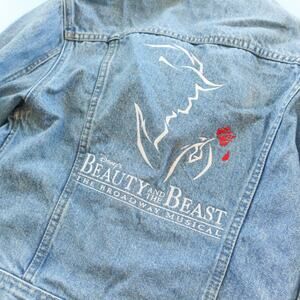 Features: Vintage 90s denim disney beauty and the beast broadway jacket