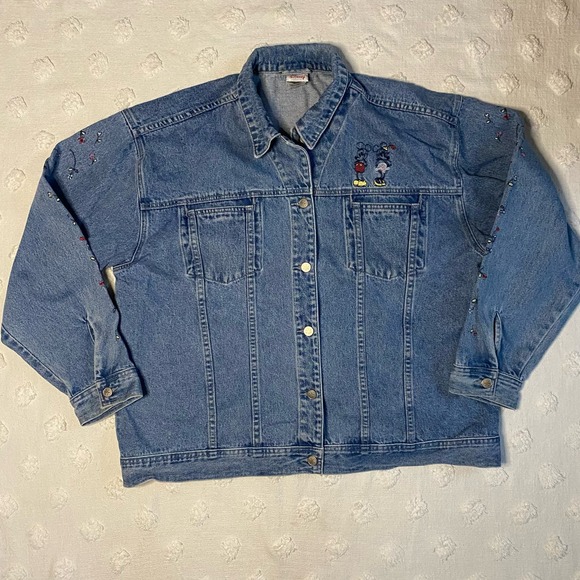 Vintage 90s Disney Embroidered Mickey Minnie Denim Jacket XXL Plus Size