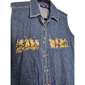 Vintage 90s Disney L 7 Dwarves Snow White Chambray Sleeveless Top Embroidered
