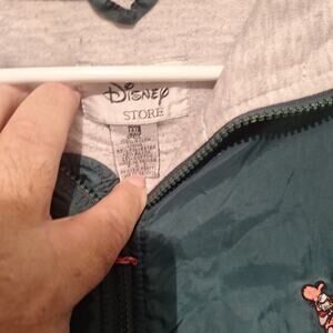 This Vintage 90s Disney Men's XXL Spell Out Winnie the Pooh Tigger Lined Hooded Jacket is a unique and nostalgic outerwear piece perfect for fans of classic Disney characters. Made of nylon with a cotton lining, this mid-length jacket features a solid green color with embroidered accents of Winnie the Pooh and Tigger. The hooded jacket is equipped with a zip closure and offers a comfortable fit for casual or travel occasions during the winter and fall seasons. The 90s theme and vintage design add a touch of retro charm to this stylish and functional piece.