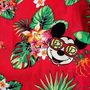 Vintage 90s Disney Mickey Mouse Red Floral Hawaiian Button Down Shirt XL