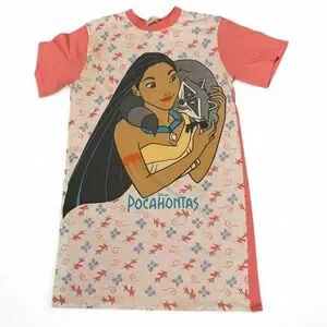Coral sleeves with large front Pocahontas graphic. Classic 1990s Disney movie sleepwear.