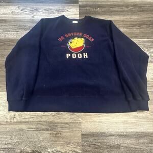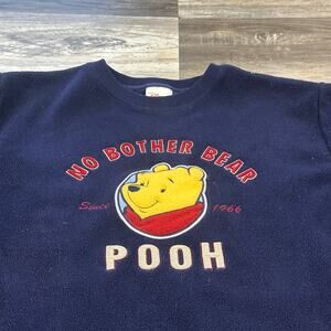 Vintage 90s Disney Winne The Pooh Blue Men M Crewneck Fleece Pullover Sweatshirt Graphic No Bother Bear  100% polyester  long sleeve activewear classic pullover wdw style oversized baggy fit
