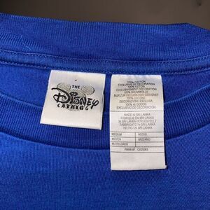 Blue base, and some signs of wear, small possibly paint markings on the front photographed for disclosure. Quality 100% cotton, Disney catalog tag. Good used condition outside of the slight paint markings, no holes in the stitching or fabric.