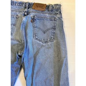 Vintage 90s Distressed orange Tab 505 Levis. Distressed to perfection around the waist. A 33 inch waist by a 30 inch length