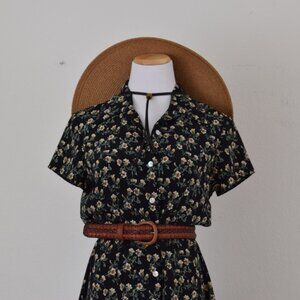 Vintage 1990s dark floral mini dress. In good vintage condition. Label washed out. BELT NOT INCLUDED.