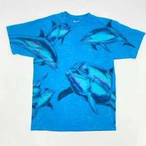 Vintage 90s Dolphin Tee Ocean Nature Wildlife Medium T-Shirt Retro Single Stitch