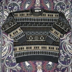 Vintage 90s Domani UOMO Geometric Nordic Grandma Knit Women’s Sweater Size Large