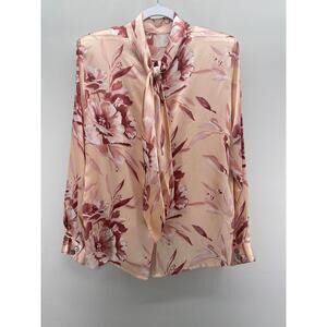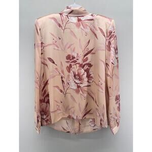 Vintage 90s Doncaster Peach Pink Mave Silk Tie Neck Silk Blouse w/Shoulder Pads