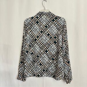 Vintage 90s DonnKenny Women's Diamond Abstract Print Shirt in Grey sz M