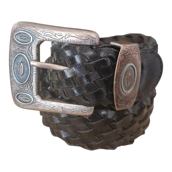 Vintage 90s Donna Katz Black Leather Braided Belt Women Size Large