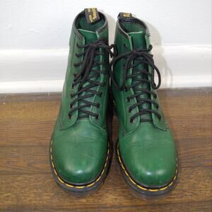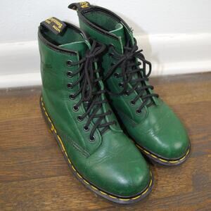 Vintage 90's Dr. Martens Green 1460 MIE Smooth Leather Lace Up Boot 7W/5.5M