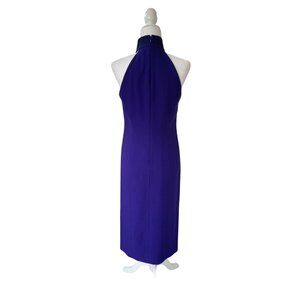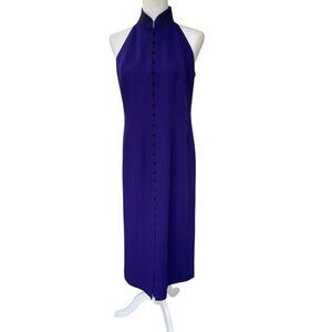 Vintage 90s Dress Cocktail Maxi Liz Claiborne Embroidered Halter Purple