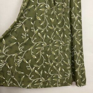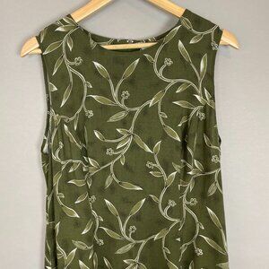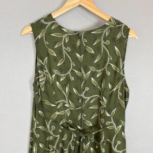 Vintage 90s Dress Green Leafy Floral Momcore Rayon Sleeveless Tie Waist Green