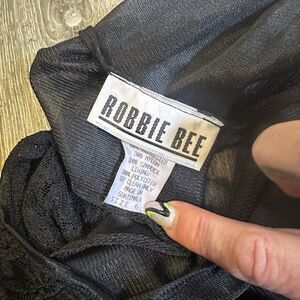 The vintage 90s dress by Robbie Bee in size 6 exudes a goth aesthetic with its lace material and design. Made in the United States, this dress captures the essence of the 1990s fashion with its unique style and brand. Perfect for those who appreciate the dark and whimsical vibes of the goth subculture, this dress is sure to add a touch of nostalgia and charm to any wardrobe.