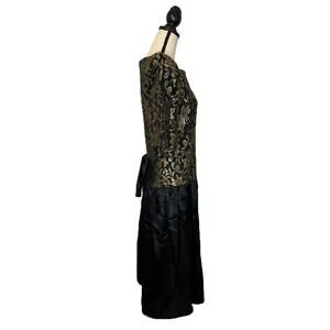 Vintage 90's Dress Miss Dorby Tapestry and Satin Black Gold Dress with Bow Sz 16