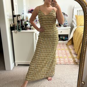 Vintage 90’s Dress S Wear Micro Floral Vneck Rampage Neutral Maxi Y2K 2000’s