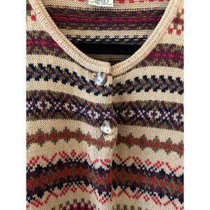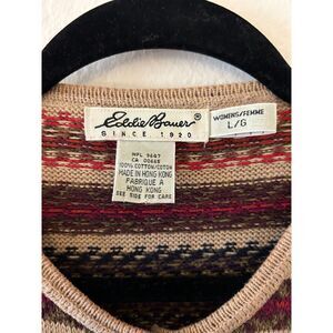 Vintage 90s EDDIE BAUER Henley Sweater WOMENS L Fairisle Earth Tone Fair Isle