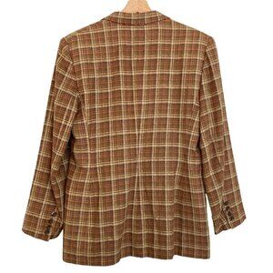 Vintage EVAN-PICONE Heritage Silk Blend Brown Plaid Two Button Blazer