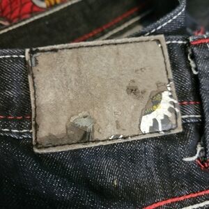 🔥 Wicked vintage find! These 1990s EXA men’s jean shorts feature bold red dragon stitching on the back pockets — a true throwback piece with attitude.