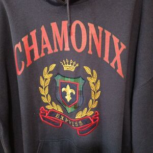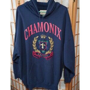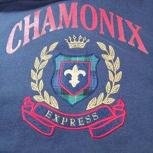 Vintage 90s EXP Jeans Chamonix Express Sweatshirt L Navy Blue Crest Logo