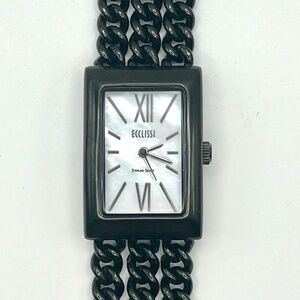Beautiful and Great condition Vintage 90's Ecclissi Mother of pearl Silver and Black tones Ladies Watch Working, new battery installed.