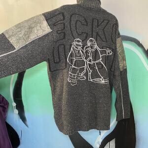 Insane vintage 90s Ecko Unlimited graphic graffiti style street art sweater!!! Logo detail embroidery on the back. Zipper detailing in the front. No flaws. In excellent condition.