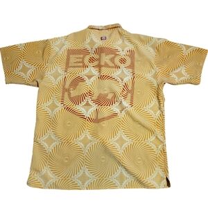 Vintage 90s Ecko Yellow Gold Graphic Geometric Looped Collar Button Shir…