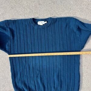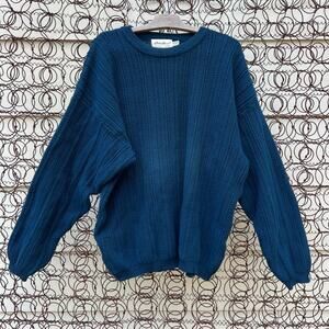 Vintage 90s Eddie Bauer Dark Teal Blue Rib Knit Crewneck Sweater Cotton LARGE