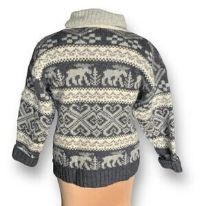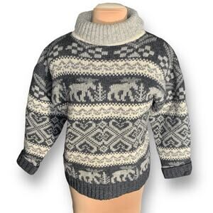 Vintage 90s Eddie Bauer Gray Black Moose Nordic Fair Isle Turtleneck Sweater