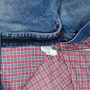 Vintage Eddie Bauer Jeans Regular Straight Leg Fit Dark Wash Denim Plaid Lined Union Made in USA 90s