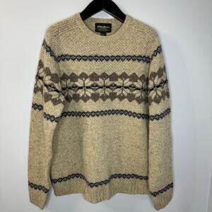 Vintage 90’s Eddie Bauer Knit Wool Snowflake Fair Isle Beige Sweater Mens XL New