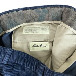 Vintage 90s Eddie Bauer Mens Pleated Corduroy Pants 38x33 Navy Blue Stretch