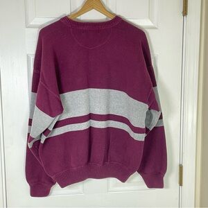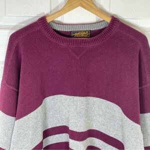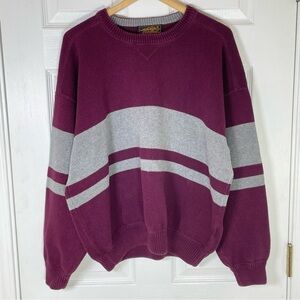 Vintage 90’s Eddie Bauer Men’s Sweater Size XL Striped Gray Maroon Knit Crewneck