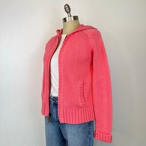 Vintage 90's Eddie Bauer Pink Cotton Blend Knit Full Zip Hooded Sweater Jacket S