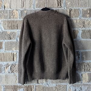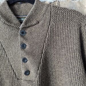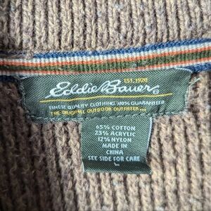 Vintage 90s Eddie Bauer Tan Brown Ribbed Knit Henley Sweater Large