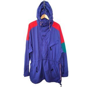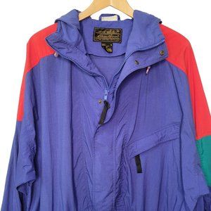 Vintage 90s Eddie Bauer Windbreaker Blue Colorblock Hooded Jacket XL