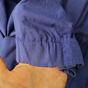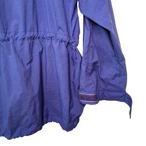 Vintage 1990's Eddie Bauer lightweight pullover anorak jacket in colorblocked periwinkle blue, with red & green accents.