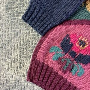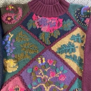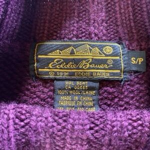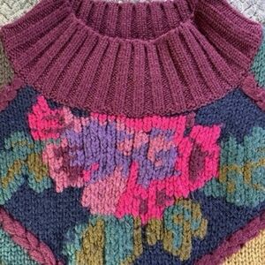 Vintage 90s Eddie Bauer Womens Small Wool Sweater Patch Knitted Flowers 1991