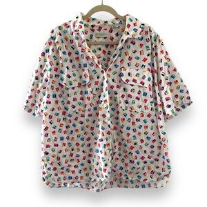 Vintage 90s Elisabeth White Patterned Short Sleeve Button Down Women’s Size 20