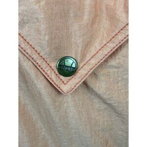This vintage Ellesse windbreaker jacket offers a stylish blend of functionality and fashion. Crafted in Italy, it features a unique peach hue and convenient zip and snap closures. Its lightweight design makes it ideal for transitional weather, providing comfort and protection. The jacket's distinctive style and quality materials ensure lasting wear.